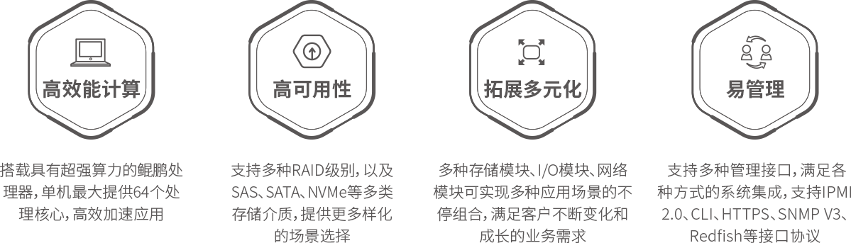 YABO 鸭脖R721高密服务器是yabo.com数码基于鲲鹏基础硬件推出的新一代高密度计算设备。其具备高效能计算、安全可靠与开放生态优势。